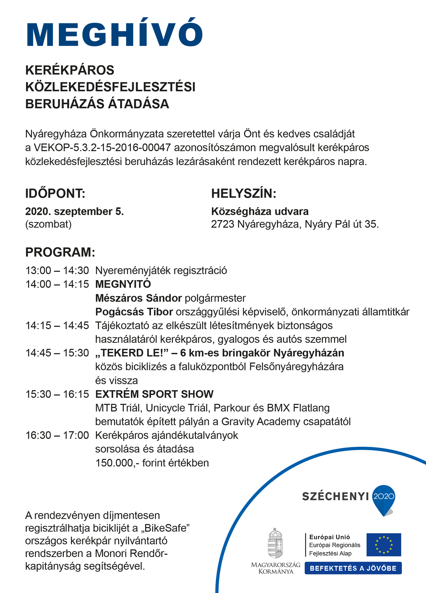 Kerékpáros közlekedésfejlesztés Nyáregyházán