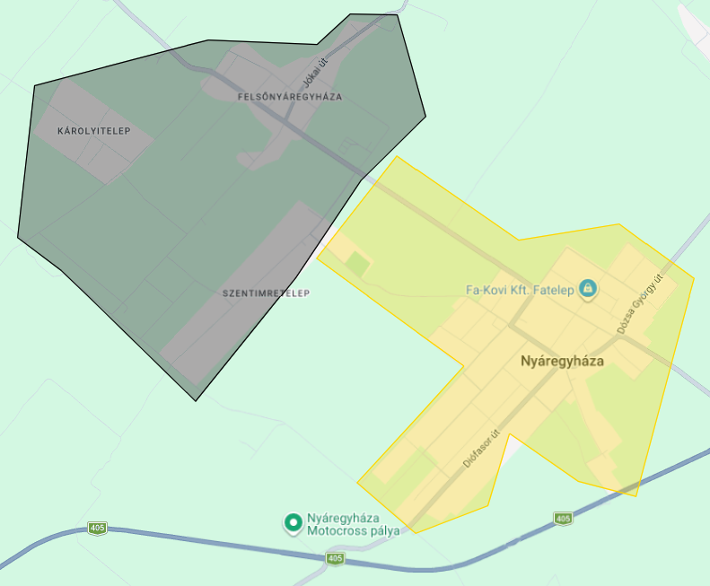 1. ütem: Felsőnyáregyháza, Szentimretelep, Károlyitelep